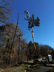 After a wind storm, there were two leaning pine trees over the drive thru lane at Arby’s. We were called in to remove both trees.