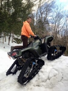 I’m an engineer and I inspect power lines all around Vermont for work. This is me driving my ATV which gets fitted with tracks in