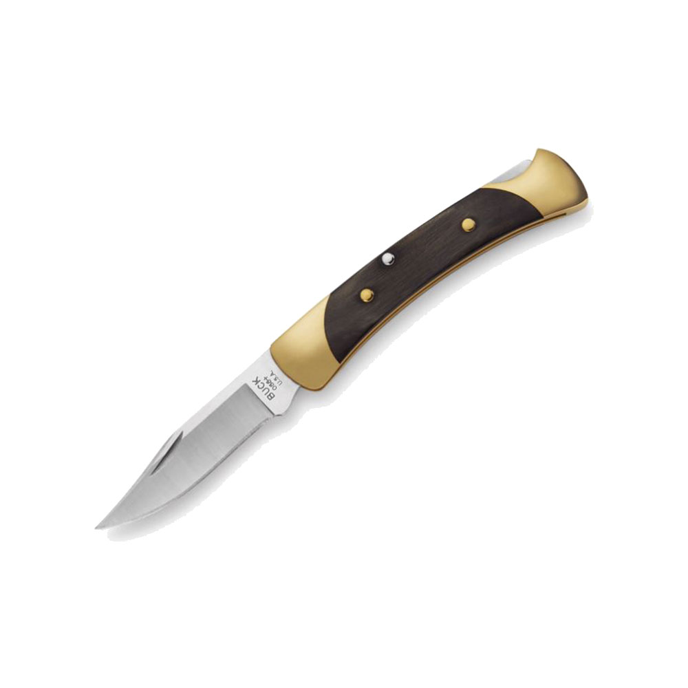 With a hand-sharpened clip point blade, this knife is ideal for daily tasks. The blade has a nail notch for easy opening. The timeless handle design is constructed with brass bolsters with genuine ebony scales hand finished by our craftsmen. This knife has a Lockback mechanism that securely locks the blade open when in use. This knife was designed as a half-size version of the 110 Folding Hunter, thus the name, The 55.