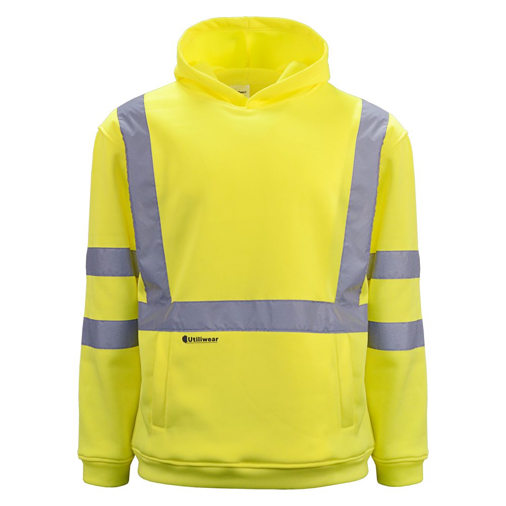 Stay warm, stay visible, and stay safe on the job. The Utiliwear Hooded Sweatshirt is built from durable 100% polyester fabric with bright high-visibility coloring and sew-on reflective tape for 360° visibility. Meeting ANSI 107-2020 Class 3 standards, this sweatshirt helps you stand out in low-light and high-traffic environments. A regular-sized hood keeps your line of sight clear, while a front hand warmer pouch pocket adds comfort and convenience when the temperature drops.