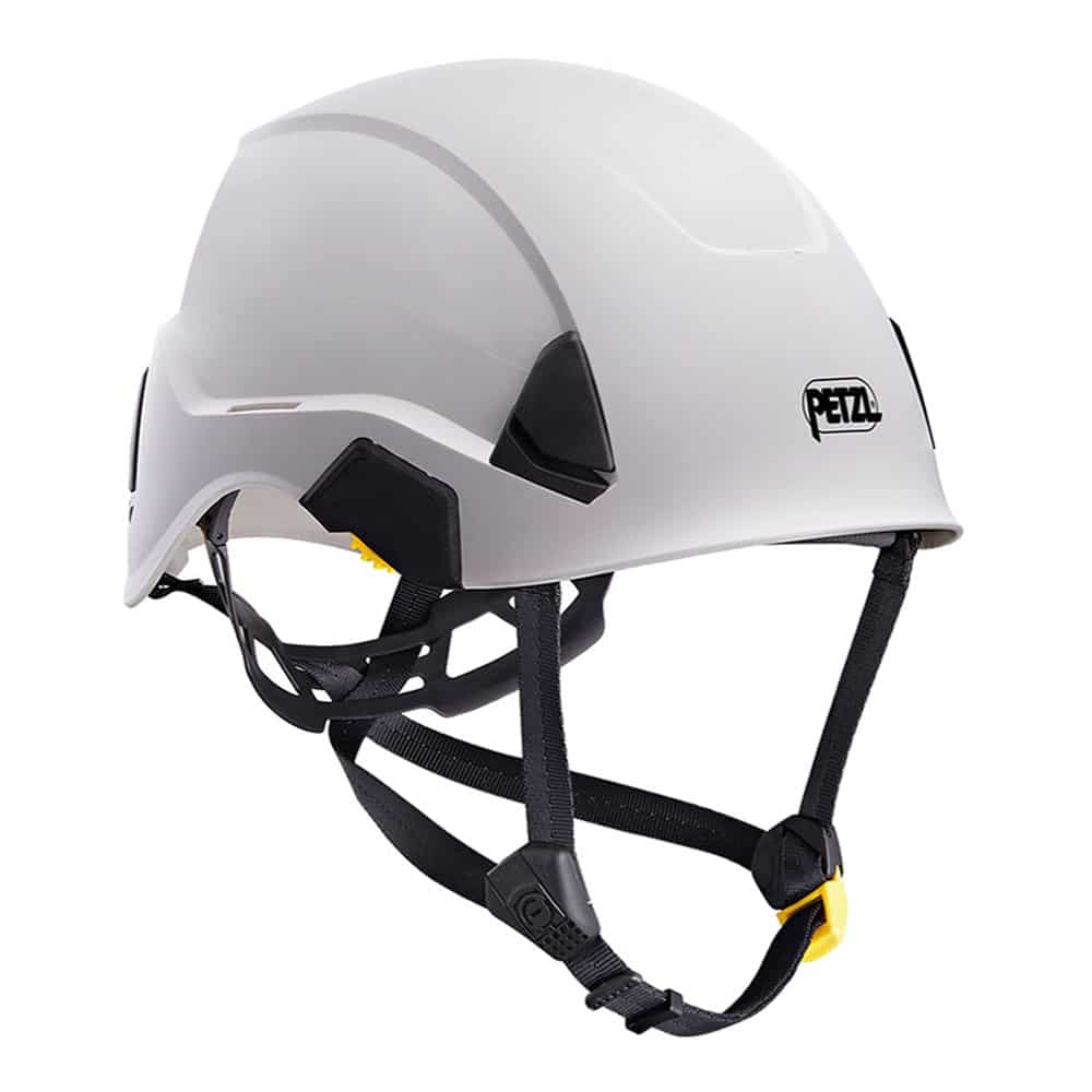 - DUAL chinstrap allows the worker to adjust chinstrap strength in order to adapt the helmet to different environments: work at height (EN 12492) or on the ground (EN 397). The clip has two positions, corresponding to these two uses: high strength, limiting the risk of losing the helmet during a fall, and low strength, limiting the risk of strangulation if the helmet is snagged while the user is on the ground