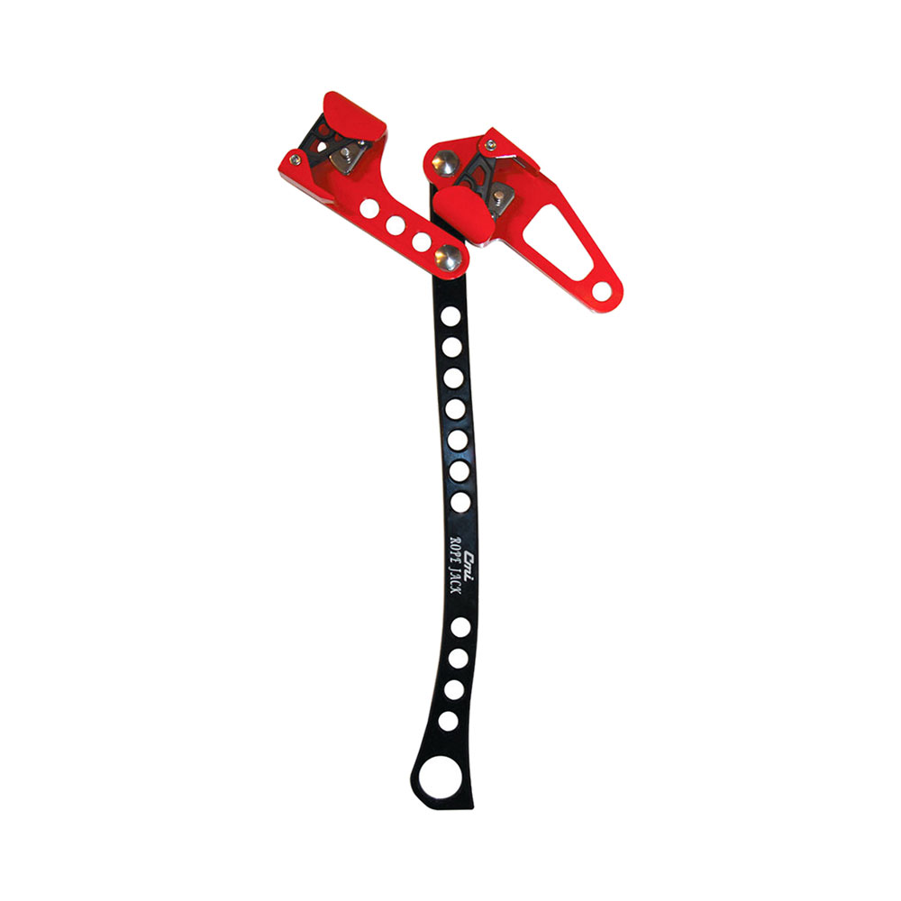 The rope jack is approved for life support use as long as another form of progress capture device is used in conjunction with the device. Never use the Rope Jack by itself for hauling human cargo. The CMI Rope Jack is approved for static ropes from 3/8-5/8″ diameters. Testing has shown that a single person can generate somewhere between 300-80O pounds of force while using the Rope Jack. Testing revealed CMI ascenders will strip the sheath of brand new 1/2″ rope at roughly 1500lbs). To remove a load from the Rope Jack, pull the handle and allow the trailing cam to loosen, then pull handle again and allow the forward cam to loosen. Releasing the Rope Jack will take a little practice. The Rope Jack should be relieved from tension a little bit at a time off each cam.