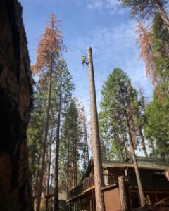 This dead ponderosa was killed by Mountain pine beetle. I topped it at the half way mark to jump it over the wood shed. The