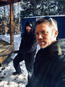 Working hard in my Arborwear double thick pullover. Getting some test holes done prior to our drill shot. Comfortable and keeps you warm. My new