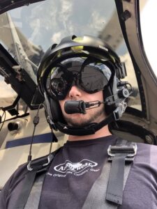 Wearing an arbor wear shirt in a MD500 helicopter after doing some pipeline inspections in West Virginia. Photo taken after the flight while shutting down