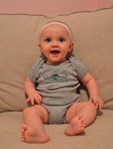 Stella loves to wear her Arborwear onesie around the house or even when she helps mom and dad out in the yard and garden. She