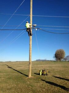 Pole Line reroute. 20 degrees and the wind straight in the face. Hangin out enjoin the SUN, with a 600 pair copper phone line.