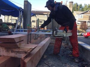It’s not easy working with large beams in the small constraints of a city like Seattle but doing it as a one man show turned