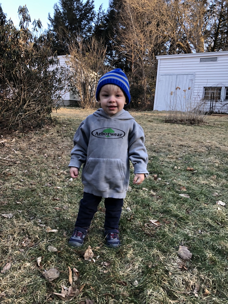 Playing pick up sticks in my Arborwear hoodie with grandpa Tom in Castleton-on-Hudson, NY.