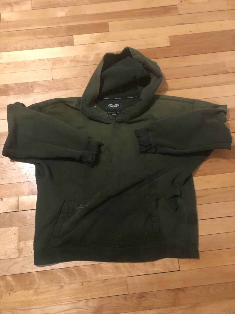 Ive had an Arborwear single thick hoodie for about three years and its the only hoodie to withstand the riggors of being a arborist. The wrists on the sleeves are tattered and it has one hole on the side but I cant work in the cold without it. I love it to death the hole in the side was a mistake with a silky and it has yet to get bigger. Tree dirt and blood stains I love this thing and will continue to not only buy the sweatshirts for my self but as well as my girlfriend along with the hats and shirts. I’m hooked to Arborwear for life!