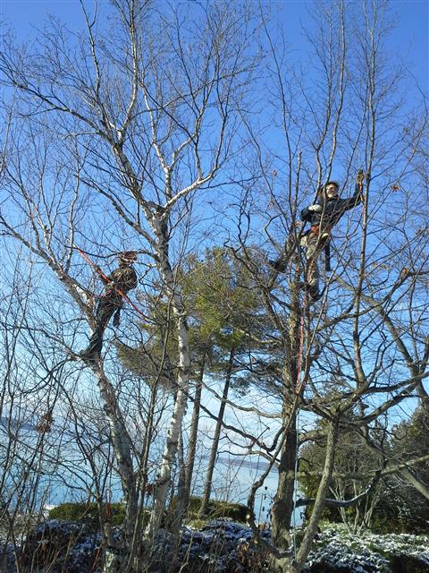 Ben Veling, Owner of Timberwolf Tree Care in Harbor Springs, MI, and his protege Jocelyn Mahone have a friendly game of “Someone’s Higher”.